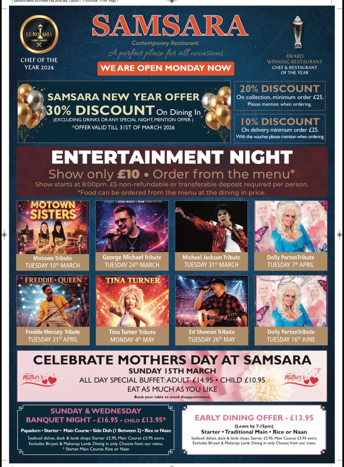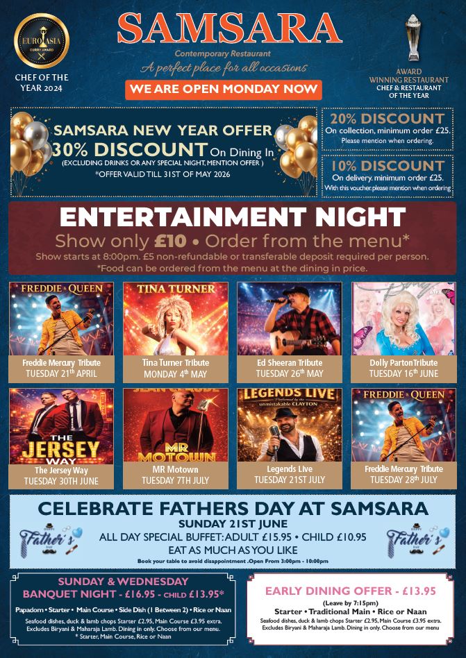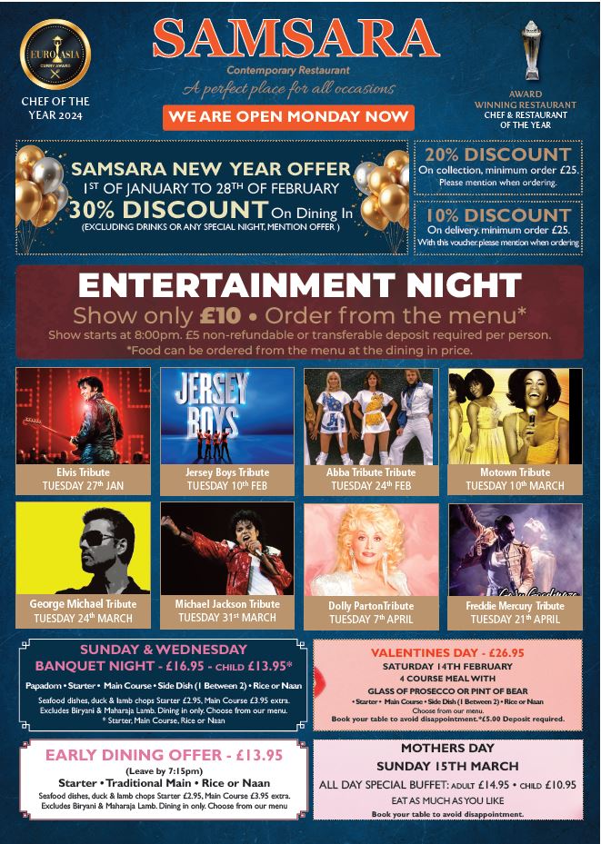 SAMSARA INDIAN RESTAURANT uses only the very best ingredients to prepare your meal. In addition to the all time favourite dishes, we also offer our own specialities creating unique meals for you to enjoy.